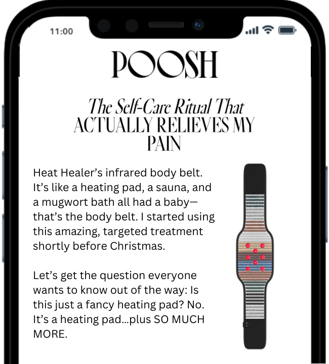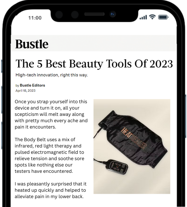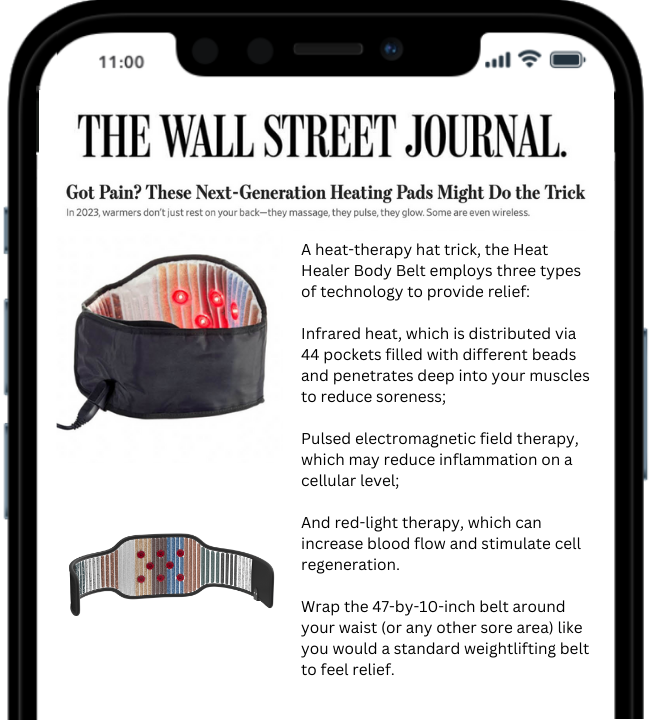The Body Belt uses a nichrome heating element to produce soothing infrared heat at a temperature of up to 140f (60c) and for up to 60-minutes at a time.