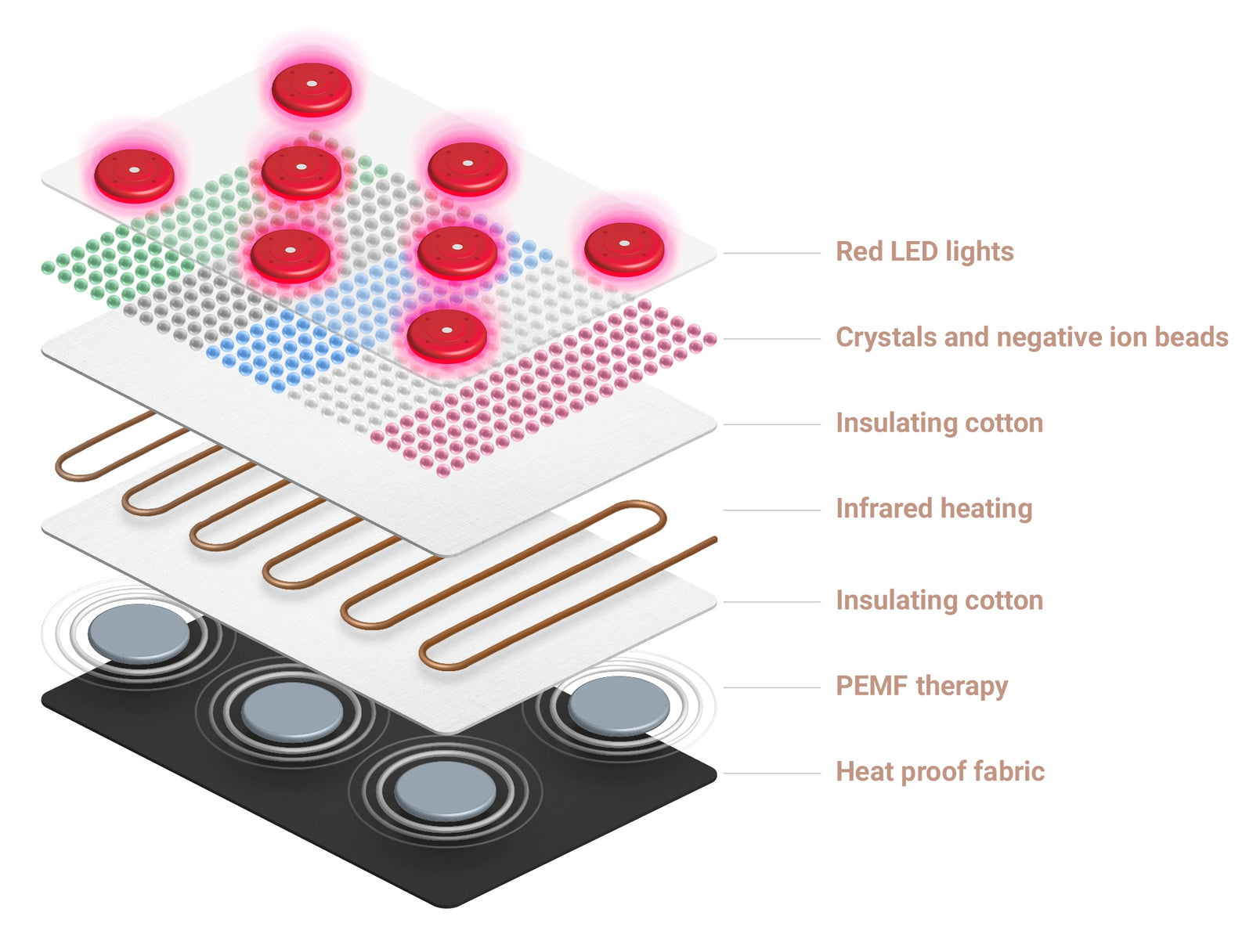 Triple threat technology is the combination of infrared heat, red LED light and PEMF (pulsed magnetic energy).